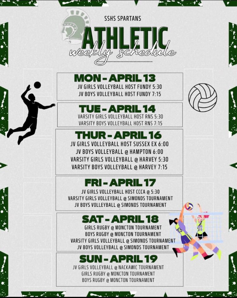 Athletic Weekly Schedule for SSHS Spartans